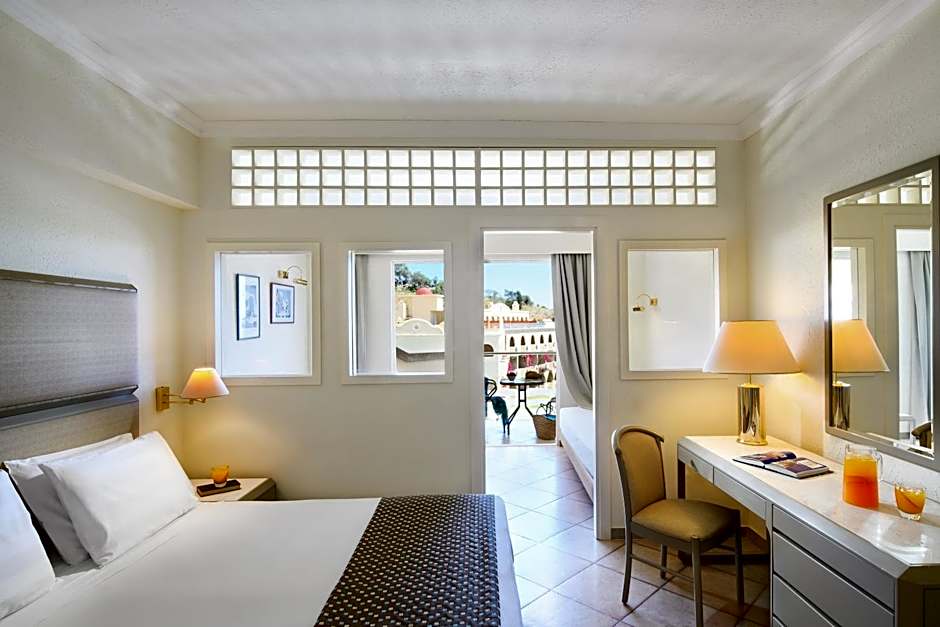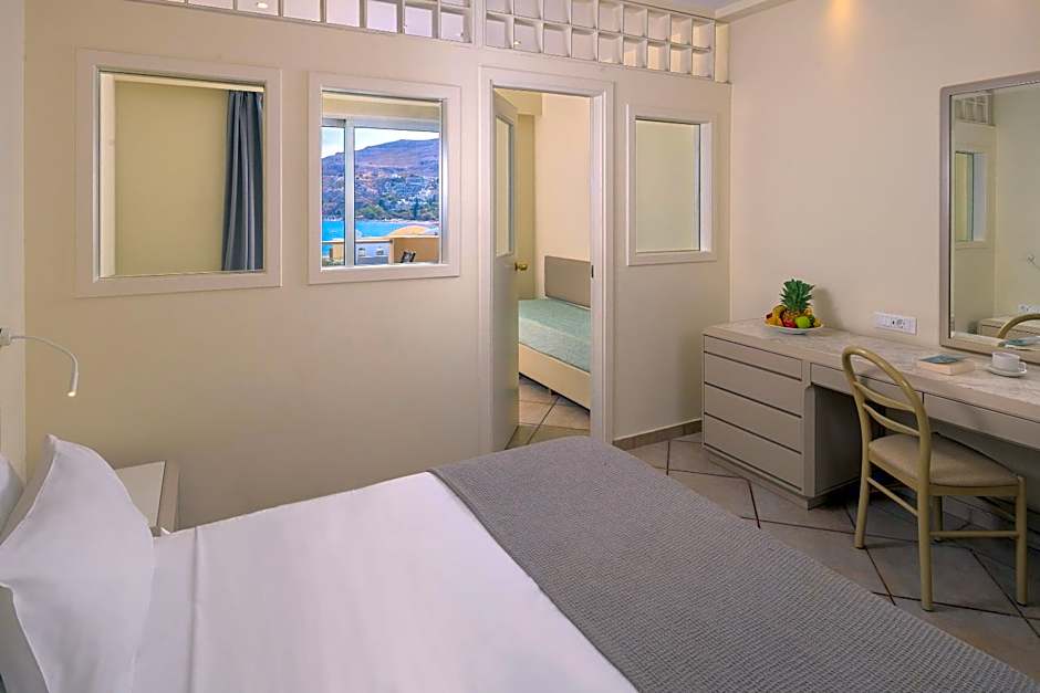 The Junior Suite features a double bed or twin bed and two single beds, a bathroom with bath and free toiletries. The air-conditioned junior suite offers a flat-screen TV with satellite channels, soundproof walls and a tea and coffee maker. This room has a balcony with an amazing sea view.